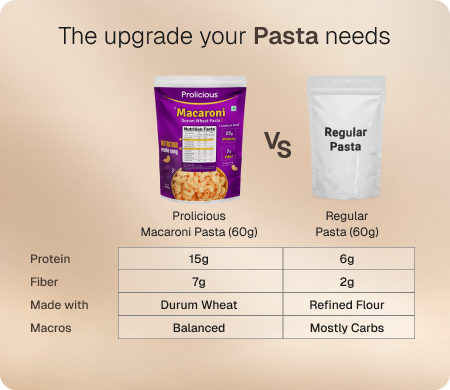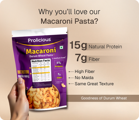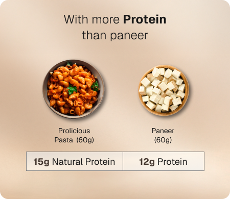 The Indian vegetarian diet lacks protein. Our Pasta has been rebalanced to give you over 10g Natural Protein in just 60g (1 Serve). Protein supports muscle repair and keeps you fuller for longer, while fiber improves digestion and aids in weight management.