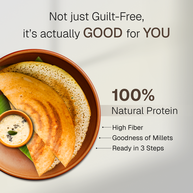 "Our whole family loves these dosas — super crisp, packed with protein, and everyone asks for seconds!"Millet Dosa & Uttapam Mix | 12g Natural Protein