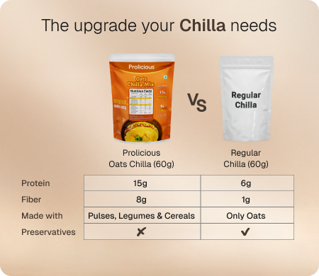 ANS: It offers higher protein and fiber than regular homemade chilla, keeping you fuller for longer. It’s super convenient, and ready in minutes, no prep needed.