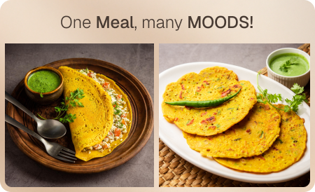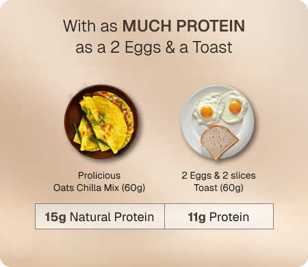 "Honestly, I wasn’t a breakfast person until I found these vegetarian chillas — two of them pack 15g protein, just like eggs, but tastier!"Oats Chilla Mix | 15g Natural Protein