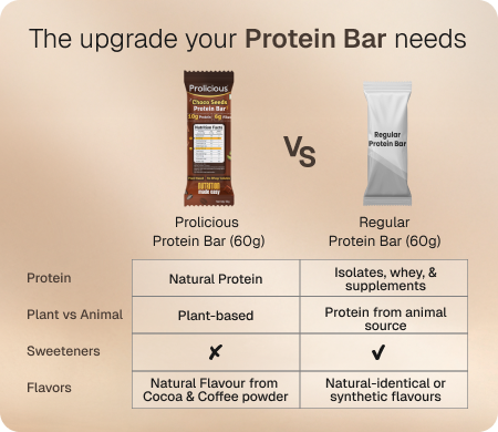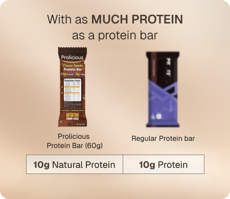 Finally, a Protein Bar That Looks and Tastes Natural Tired of artificial-looking & tasting bars? So were we. That’s why we made a protein bar with real food ingredients. Prolicious Choco Seeds Bar blends rich, dark chocolate with crunchy roasted seeds for a satisfying bite that doesn't taste synthetic. Made without isolates, whey, or supplements, our bar delivers natural, plant-based protein the way nature intended—simple, satisfying, and delicious.