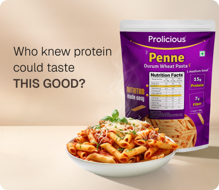 A Pasta that is actually good for you! Get the pasta texture you love, with all the goodness you deserve. Each bowl is packed with 15g of plant-powered protein, made entirely from whole food ingredients. Prolicious Penne Pasta contains No maida, no additives—just clean, nourishing ingredients.