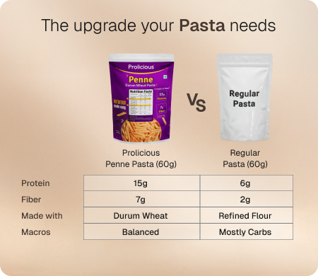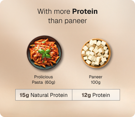 ANS: The Indian vegetarian diet lacks protein. Our Pasta has been rebalanced to give you over 10g Natural Protein in just 60g (1 Serve). Protein supports muscle repair and keeps you fuller for longer, while fiber improves digestion and aids in weight management. - I’m trying to lose weight, can I have this Pasta?