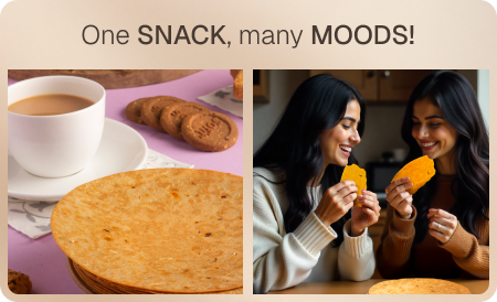 "Switched my chai biscuits to this khakhra – don’t miss them at all! No sugar, just protein from dals, and it actually keeps me full till dinner."- Home