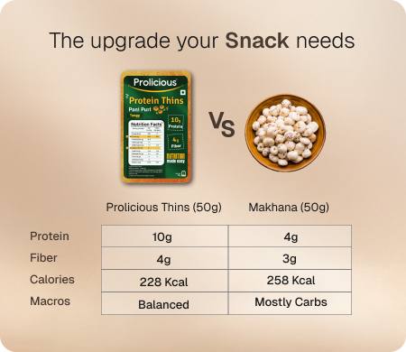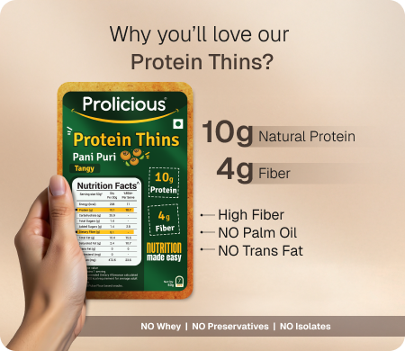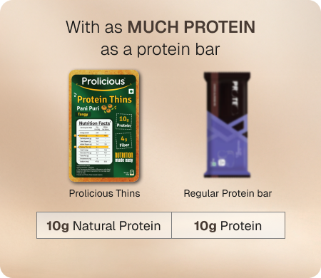 Wholesome. Crunchy. Seriously addictive. Prolicious Pani Puri Thins pack in the chatpata flavors you love but with 10g natural protein — no isolates, no palm oil, no junk. Just real ingredients, baked to perfection. Enjoy them on their own, pair them with your favorite dip, or add a crunch to your meals.