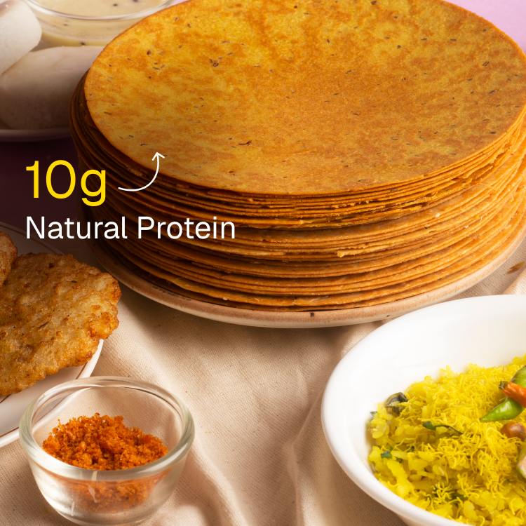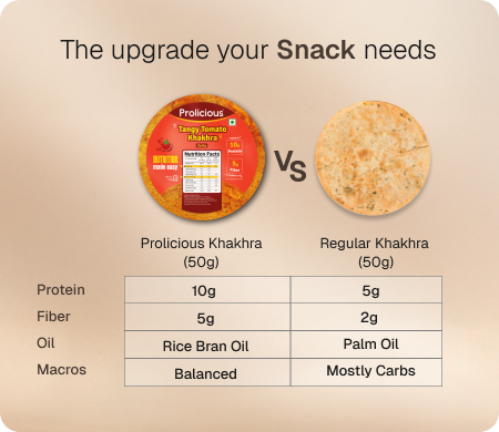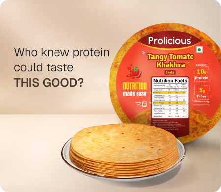 ANS: The Indian vegetarian diet lacks protein. Our Garlic Bread Khakhra has been rebalanced to give you over 10g Natural Protein in just 50g (3 Khakhras). Protein supports muscle repair and keeps you fuller for longer, while fiber improves digestion and aids in weight management. - Is Prolicious Khakhra diet-friendly?