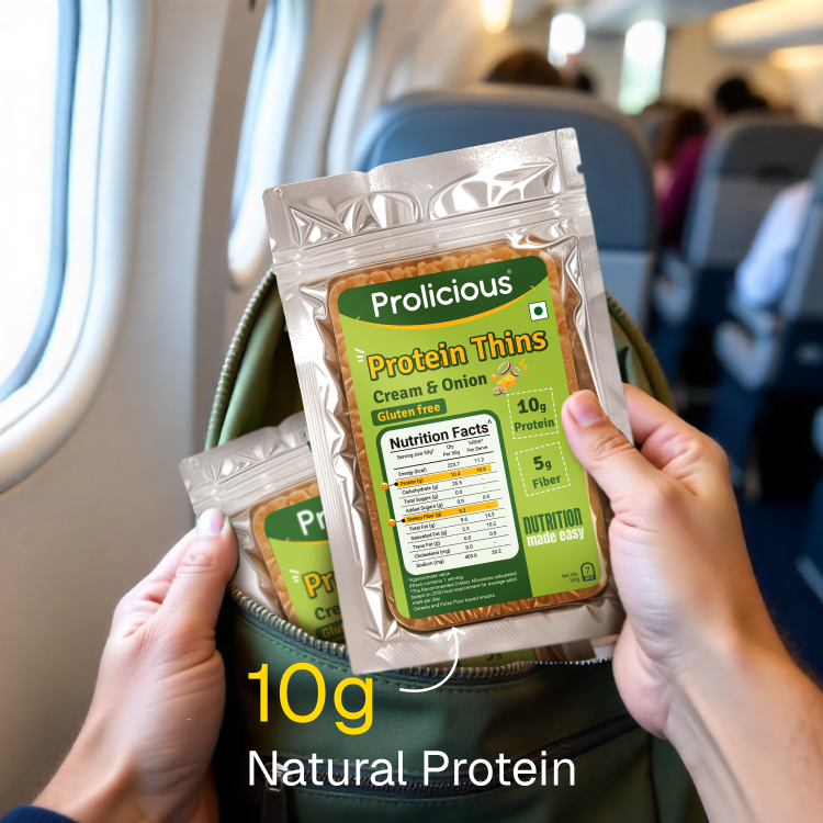 ANS: The Indian vegetarian diet lacks protein. Our Thins have been rebalanced to give you over 10g Natural Protein in just 50g (1 Pack). Protein supports muscle repair and keeps you fuller for longer, while fiber improves digestion and aids in weight management. - Are Prolicious Thins Diet Friendly?