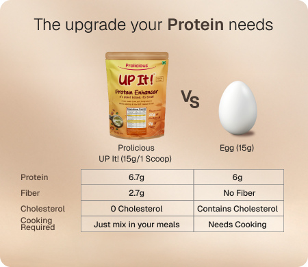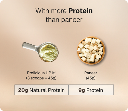 "When I turned vegetarian, I was worried about my protein intake , but UP It! has been a game-changer. I just add a scoop to my rotis- and get an easy 7g Protein- with no change in taste."- Home