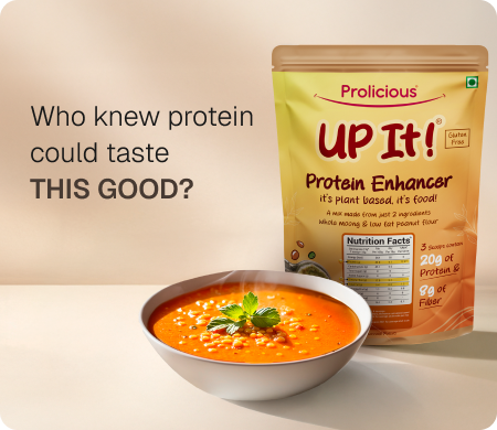 Made with just 2 ingredients: whole moong flour and low-fat peanut flour, UP it! is an incredibly easy & natural way to boost your protein and fiber - without any isolates, whey or supplements. It contains no preservatives, no sweeteners, and is completely gluten-free. Just add a scoop to your smoothies, curries, dals, or even just water to instantly UP your protein - without changing the taste. 3 scoops of UP it! a day give you 20g of protein - equivalent to 3 eggs - plus 8g of fiber! All the protein, with the added benefit of fiber. And it’s perfect for the whole family - kids, seniors, and even expecting or new moms. P.S. The protein & fiber make it great for your weight, diabetes, PCOS & gut too."